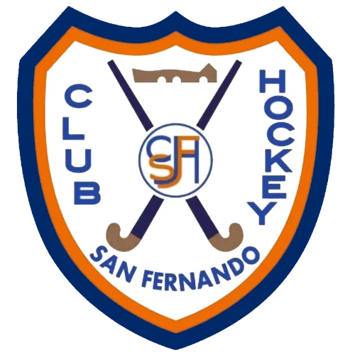 El escudo que hoy nos representa condensa toda esa historia. Dos sticks de hockey cruzados en marrón oscuro, con mangos azul marino, simbolizan el deporte que nos une. En su intersección, un círculo alberga las letras SFH (San Fernando Hockey) entrelazadas en azul y naranja, formando un monograma único que nos identifica en cualquier campo. Sobre ellos, la silueta del Puente de Caño Herrera, lugar donde nació el hockey en nuestra ciudad en 1968, en las antiguas instalaciones de Pablo Negre, hoy Bahía Sur. Este elemento nos recuerda que nuestras raíces están profundamente ligadas a San Fernando y a su historia deportiva.